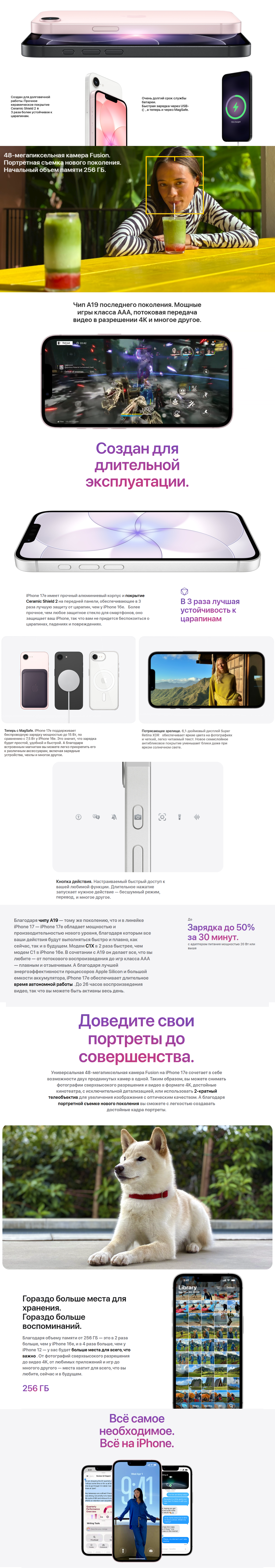 Apple iOS, экран 6.1″ OLED (1170×2532) 60 Гц, Apple A19, ОЗУ 8 ГБ, камера 48 Мп